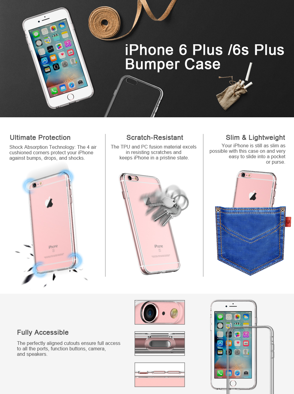 iPhone 6s Plus Case, JETech Apple iPhone 6s/6 Plus Case 5.5 Inch Bumper Cover Shock-Absorption Bumper and Anti-Scratch Clear Back for iPhone 6s Plus and iPhone 6 Pus 5.5 Inch - 0701