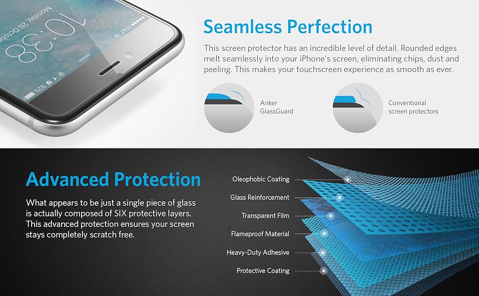 - What You Get: Anker GlassGuard for iPhone 6s, installation instructions, alcohol wipe, microfiber cloth, dust removal sticker, our unbeaten friendly customer service and LIFETIME WARRANTY(Our Lifetime Warranty does not cover natural wear and tear or damage caused by the user. The screen protector is not expected to provide protection for your phone from extreme trauma like drops or impacts).
