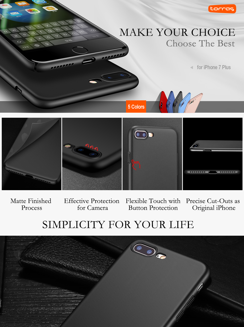 - Smooth and Slim Grip Ever. The silky, soft-touch finish of the matt exterior feels great in your hand. Touch your iPhone 7 Plus/iPhone 8 Plus, as touch baby skin. TORRAS made it. It employs matt as its main material, delicate and fine, which promises it slides into your pocket easily. The case gives more confidence to your beloved iPhone without adding bulk.