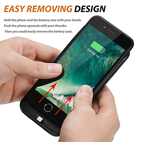 RUNSY iPhone 6S Plus / 6 Plus Battery Case, 7500mAh Rechargeable Extended Battery Charging Case for iPhone 6S Plus / 6 Plus (5.5 inch), External Battery Charger Case, Backup Power Bank Case (Black). ***Notice*** The correct way to remove the battery case: hold the phone and the battery case with your hands. Push the phone upwards with your thumbs. Then you could easily remove the battery case. Please refer to the 6th picture of the black color case.