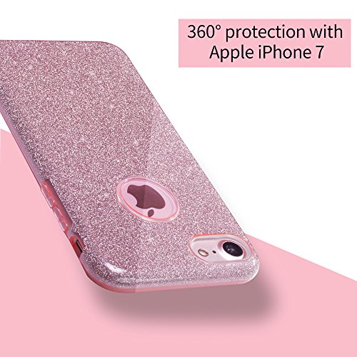 iPhone 7 Case Milprox Bling slim Glitter Pretty Cute 3 Layer Hybrid Anti-Slick / Protective / Soft thin TPU Case for girls / women 4.7" iPhone 7 - Pink.