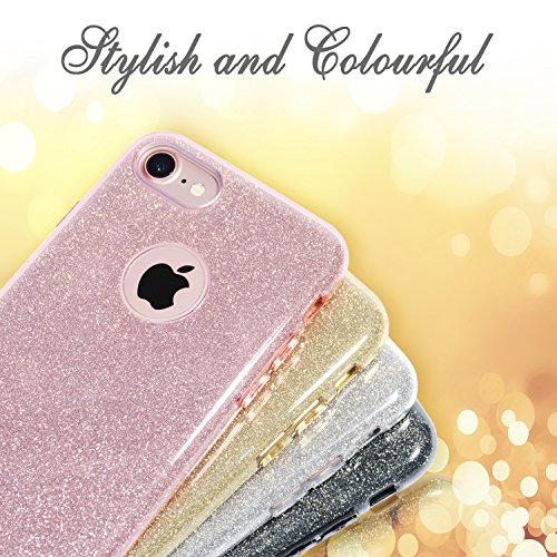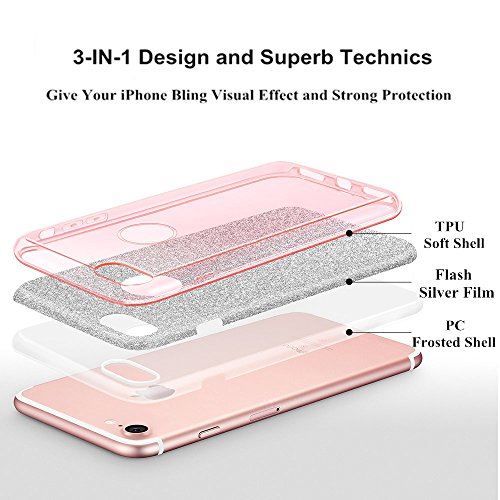 - 3. [3 Layers Hybrid structure] The slim premium 3-layer hybrid structure---TPU Soft Shell (Outer) + Flash of Silver Film (Middle) + Transparent PC Frosted Shell (Inner), not only protect the sparkles, but also protect your iPhone from drops, shocks and scratch.