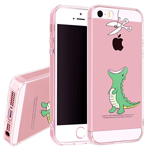 iPhone se Case iPhone 5 5s Case, Yoowei Crystal Clear TPU Soft Silicone Gel Case Cute Cartoon Animal Ultra Slim Anti-Scratch Flexible Bumper Protective Cover for iPhone SE/5/5s, Green Dinosaur. Premium Quality Material: