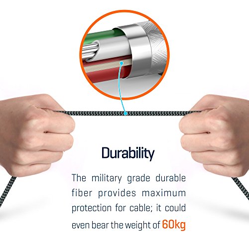 Extra Strongness1) The screw design provides stress relief to this iPhone 5S charger, it can bear 5000+ bending2) The interior fibre adds extra durability for this iPhone 6S Plus charger3) The heavy duty braided fibre outside adds maximum protection for the iPhone 7 Plus charger cord