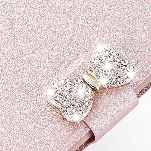 For iPhone 6S Case,L-FADNUT Bling Buckle Crystal Rhinestone Flip PU Leather Case,3D Bowknot Magnetic Buckle with Stand Wallet Card Holder For iPhone 6/6s 4.7 inch - Rose Gold. Fashionable andminimize bulk!This bling case is made of high grade PU leather with enhanced feeling and durability. The L-FADNUT Wallet case offers the 1 Card Slots for Cash or other essentials.Very convenient for you to storge photo,bank card,credit card,business card or money that is perfect for everyday handy. Your Phone sits snuggly in the internal bumper case and will not fall out if you drop it - it's corners and sides fully 360 Protected. Adding to it is a built-in Viewing Stand Feature,you can find the most comfortable way when texting or watching movie. Use the Bling diamond magnetic closure when you're not using the Phone so that it protects the screen from scratches.