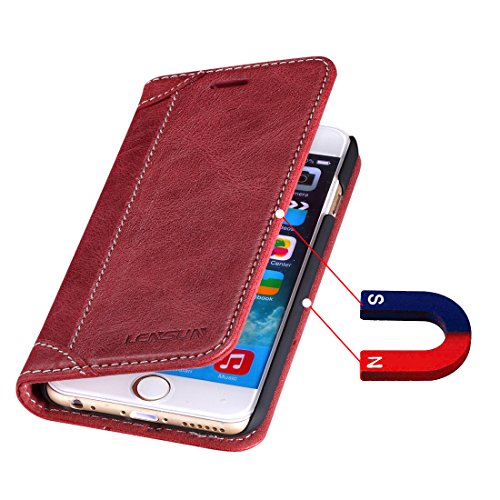 iPhone 6 case, Lensun Genuine Leather Wallet Magnetic Flip Case Cover for Apple iPhone 6 / 6S 4.7" - Wine Red #6G-DX-WR. #iPhone #case #Lensun #Genuine #Leather #Wallet #Magnetic #Flip #Case #Cover #Apple #iPhone #47 #Wine #6G-DX-WR