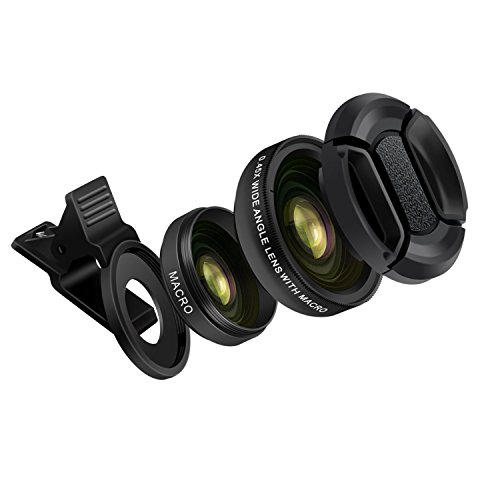 - IDEAL GIFT for Friends& Family ã€0.45X HD Wide Angle & 12.5X Macro Lens】: 0.45X Super wide angle lens is to capture a wider area than normal, such group of people, buildings and landscape. 12.5X macro lens can take clear photos of extreme tiny world which is invisible in naked eyes.