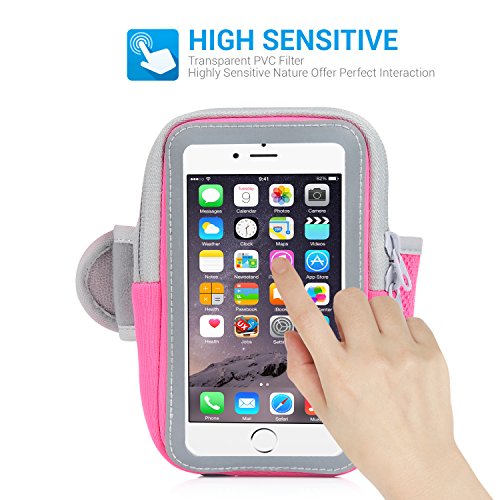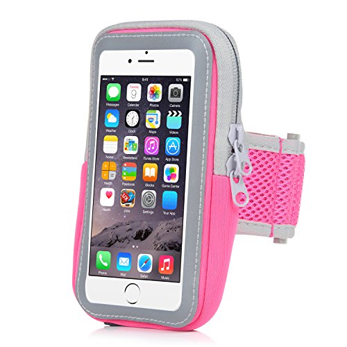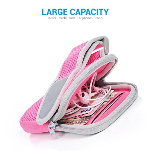 - ZIPPER POCKET - This Armband includes a SECURE Zipper Pocket that sits separately behind the phone. Its a perfect pouch for your keys and wallet.It also has a REFLECTIVE LIGHT STRIP to keep you safe and seen at night.