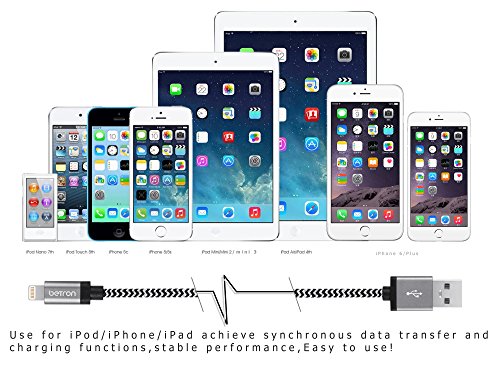 Betron Cable works with Apple iPhone 6 / 6Plus / 5 / 5C / 5S, iPad Air, iPad mini, iPod Nano 7th Generation, iPod touch 5th Generation. So there’s no need to have multiple cables trailing around, getting knotted together. Instead you can keep everything charged a