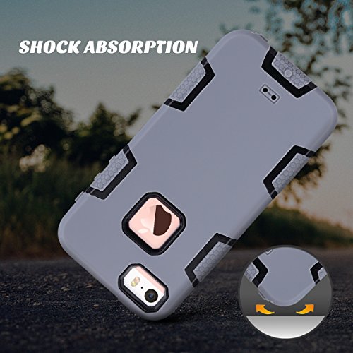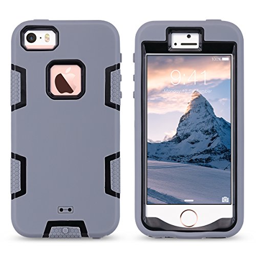 iPhone 5S Case, ULAK iPhone SE Case 3in1 Shockproof Combo Hybrid Hard Rigid PC + Soft Silicone Protective Case Cover for Apple iPhone SE/5S/5 (Gray + Black). This is a very good shockproof case. Some expensive cases on the market that do exactly the same thing as this case yet are much more expensive. It does what you need it to do, protect the iPhone from damage, but has a great price for the quality. All functions and ports are easily accessible, and the Apple sign is visible through the case. Feature:3 Piece hybrid design; 2 pcs hard plastic inner case, which snaps together over your phone and then the molded rubber outer cover which attaches over the plastic frame to keep phone from accidental knocks and drops; Shock absorption, durable and sturdy; protect your phone from fingerprints, scratches, dust, collisions and abrasion; All functions of the phone are not impeded by the case such as the cameras, speakers, miss, and Apple Logo; inside the car it will not slide around on the console between the front seats due to the texture of the rubber case. Unique design, well packaged for delivery, this case to protect iPhone SE/5S/5 gives affordable protection that pays for itself. #iPhone #Case #ULAK #iPhone #Case #3in1 #Shockproof #Combo #Hybrid #Hard #Rigid #Soft #Silicone #Protective #Case #Cover #Apple #iPhone #SE5S5 #Gray #Black