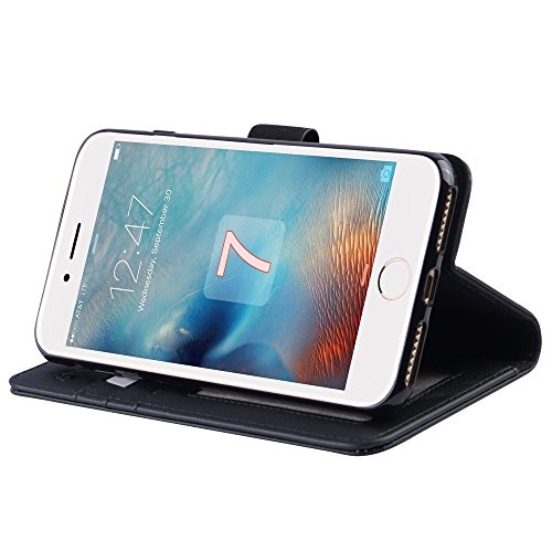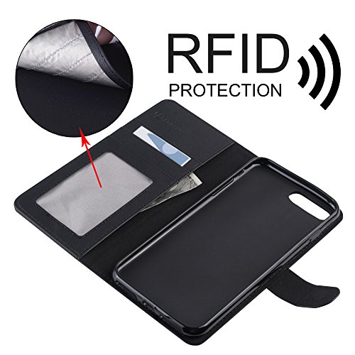 iPhone 8 PLUS Case, iPhone 7 PLUS Case, Abacus24-7 Wallet with RFID Blocking Flip Cover, Black. RFID Secure Credit Card Wallet Case for your iPhone 7 Plus.