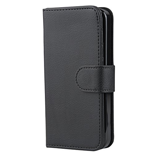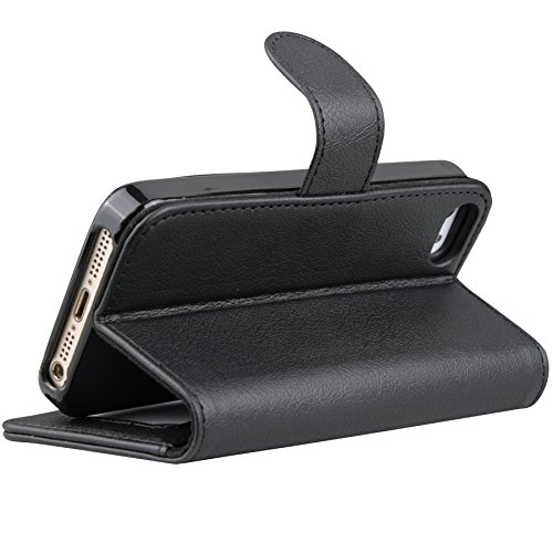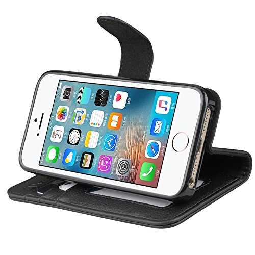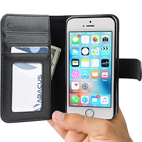 iPhone SE 5S 5 Case, Abacus24-7 Leather Wallet w/ Flip Cover, Black. Synthetic Leather Flip Wallet Case for Apple iPhone SE