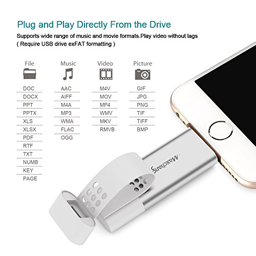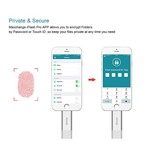 - FRIENDLY STREAMING APP: The APP Pen Drive iFlash Pro(APP charges required) supports all major video and music formats so you can stream directly from the iPhone flash drive, saving you precious space and time. Record videos and take photos directly to the Maxchange iOS memory stick via APP.
