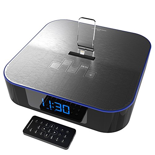 The MoreAudio Nox is ideal for docking any Apple device with the Lightning connector. It has been approved by Apple for docking an iPad as well as iPhones and iPods. The time and date are automatically updated when you dock your Apple device ensuring it is simple to use. It also has FM Radio, Bluetooth and Aux-in so you can stream music wirelessly or using the audio cable.